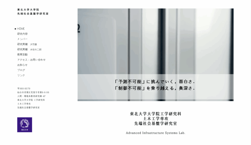 ホームページ制作事例(WEBサイト制作)|東北大学大学院工学研究科 土木工学専攻 先端社会基盤学研究室様
