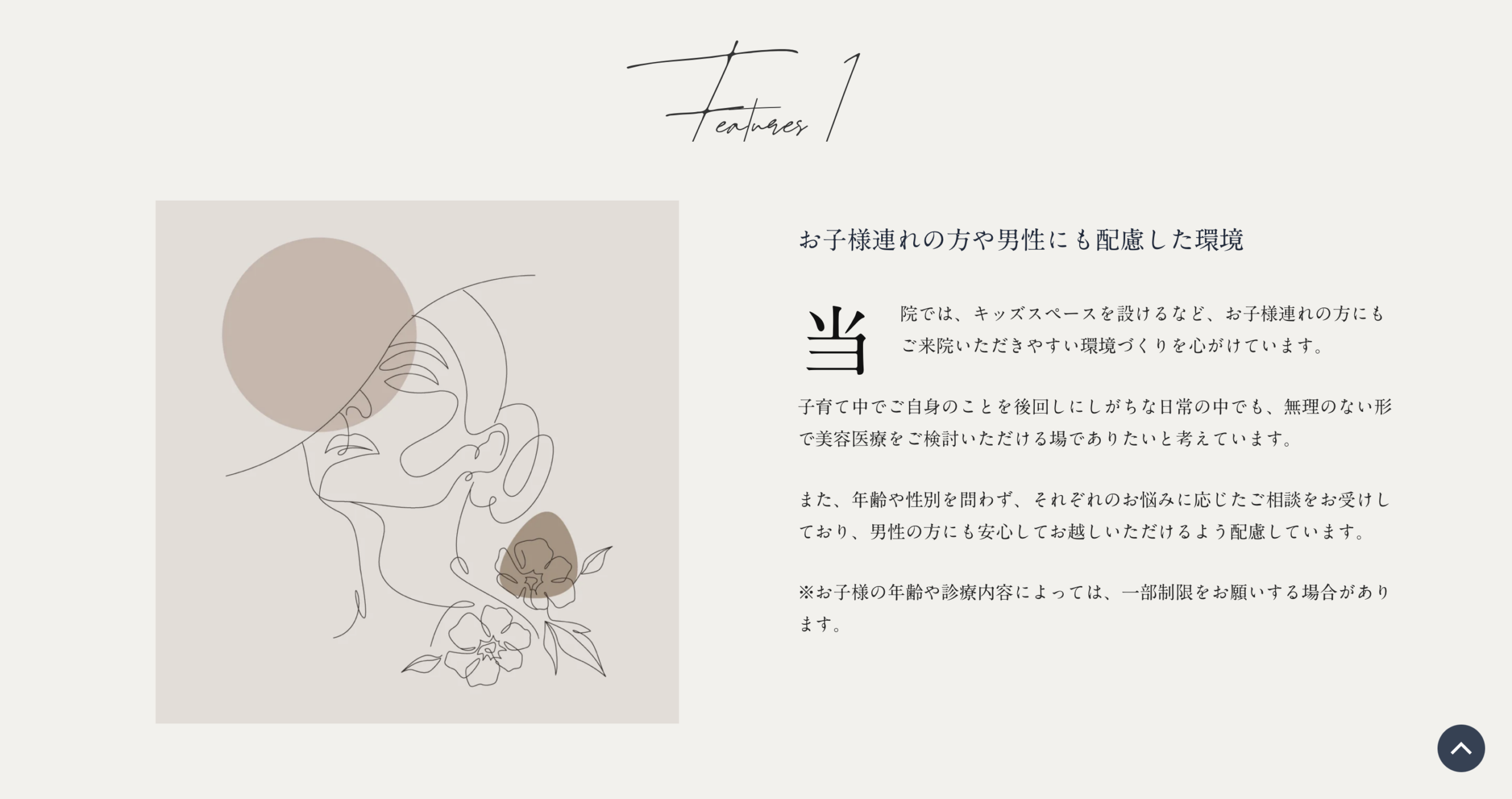 線画と写真で、男女とも通える美容外科を表現