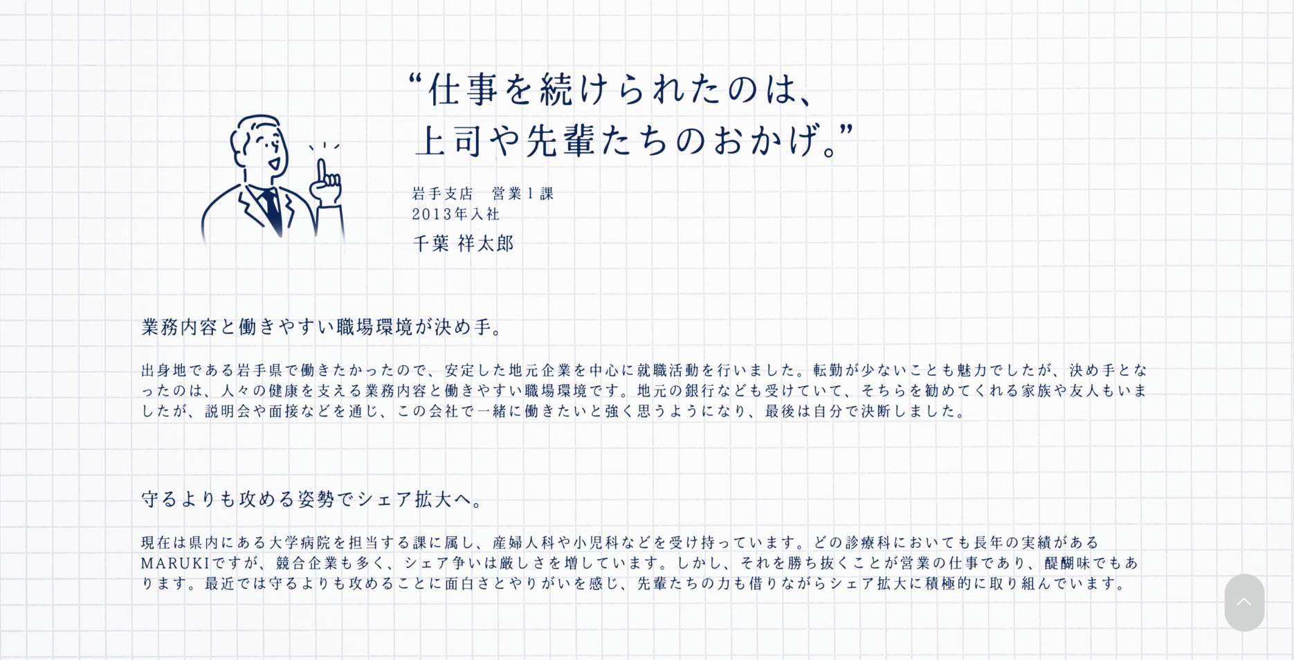 医療や物流に関わる情報は、正確であることが第一。その一方で、訪れる方の多くは少なからず緊張だったり不安を抱えながらサイトを開かれるのではないでしょうか。だからこそ、このホームページが「ほっと落ち着いて読める場所」として、丸木医科器械株式会社様の誠実な姿勢を伝えていく、そんな存在であり続けてほしいと願っております。