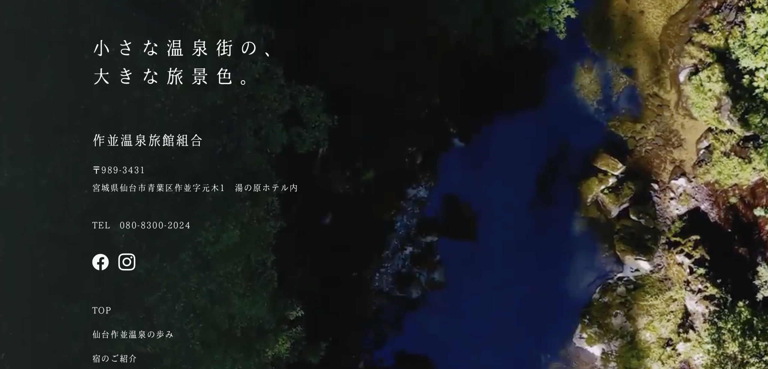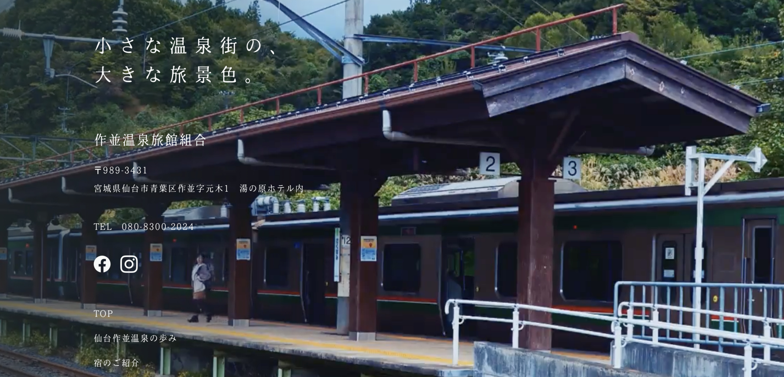 仙台の奥座敷として、長いあいだ多くの人に親しまれてきた作並温泉。今回のホームページ制作では、観光情報をただ並べるのではなく、作並という土地ならではの空気感を大切にしました。静かな山あいの雰囲気、やさしく体を包む湯の温もり、そして時間がゆっくり流れていく感覚。サイトを開いた瞬間に、ふわっと湯気に包まれるような、そんな気持ちになっていただけたらと思っています。