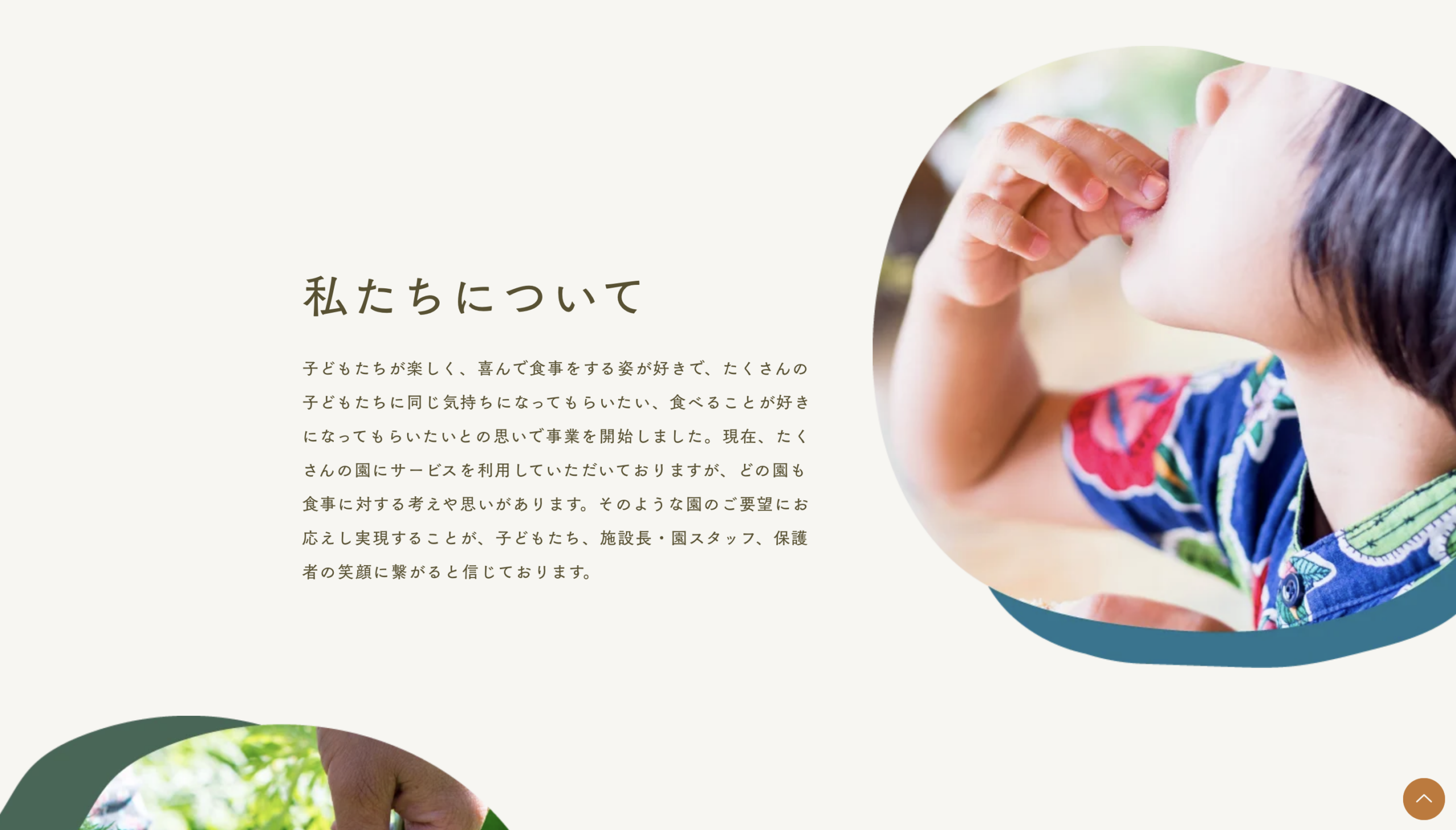 普通のホームページ制作であれば、トップページでいきなり「園の方はこちら」「親子の方はこちら」と、入り口をバサッと分けてしまうのが効率的かもしれません。でも、私たちは少し立ち止まって考えました。「本当にそれで、イースミール様の良さが伝わるだろうか?」と。対象は違っても、イースミール様の根底にある想いは一つです。それは、「食べ物が、おともだちになっていく。」という素敵なキャッチコピーにも表れている通り、食を通じて未来を支えたいという揺るぎない願い。この食への思いこそが、イースミール様が選ばれる理由であり、一番の強みだと考えました。