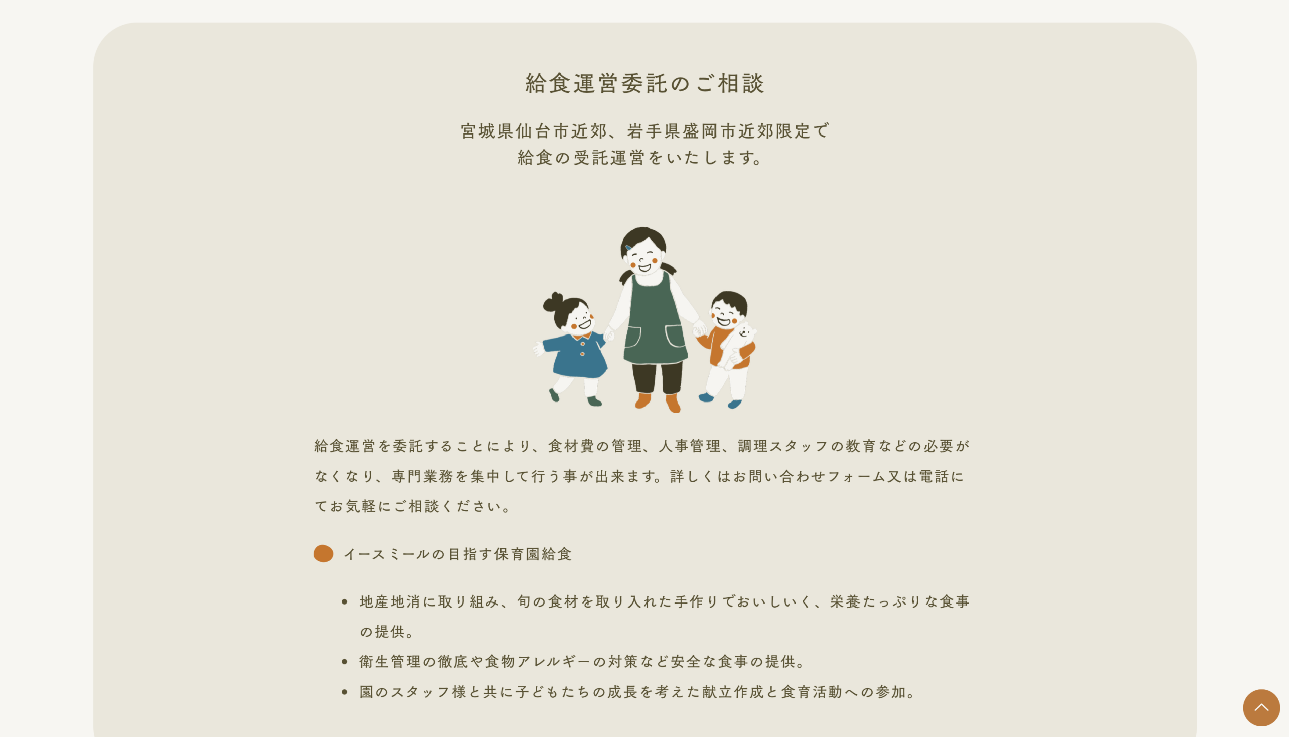 宮城県富谷市を拠点に、保育園や幼稚園に向けた「献立作成・食育活動」、そして親子で食に触れる「食体験サービス」を展開されているイースミール様。私たちが毎日あたりまえのように口にしている「食事」。それは単なる栄養補給ではありません。子どもの体と心を育むための、大切なエネルギー。そして、美味しさを感じることで幸せと笑顔を生む、かけがえのない時間。イースミール様は、そんな「食」という営みに、真正面から、そして誰よりも誠実に向き合っていらっしゃる企業様です。